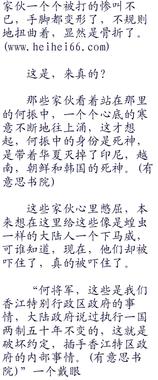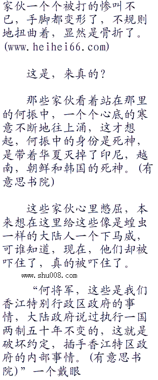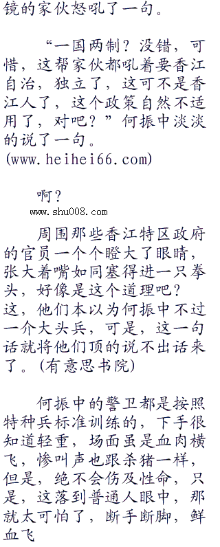 “何将军,你,这里是香江”一个香江政府官员怒吼了一声。