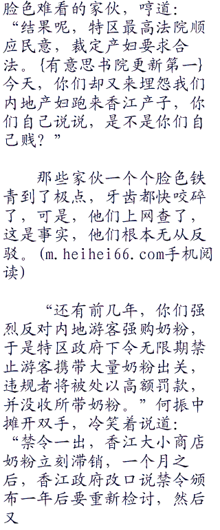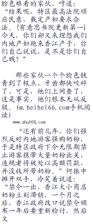“既然如此,那么,我只能是你们贱。”何振中脸上露出了一抹冷笑,大声说道:“就拿孕妇到香江生子一事,是不是你们都不满?”