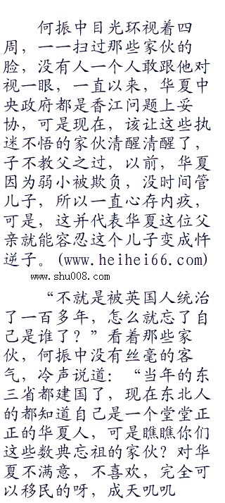很多人都用仇视的目光盯着何振中等人,网络上,市井之间,各种谣言漫天,香江和内地之间的矛盾不断地被催化,就像是一座即将爆发的火山一样,能量已经积蓄到了一个极致。手机阅读更方便m..com