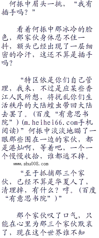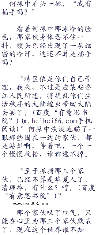 占中既是港独、对于这类企图分裂华夏的家伙,在何振中眼中已经不是华夏人了,这种人,当杀之,包括自洽闹腾的多的**都被他收拾下来了,这些人还敢怎么样?下一步**、**等等,凡是企图分裂国家和民族之人,同样都会进行全球追杀,不死不休。