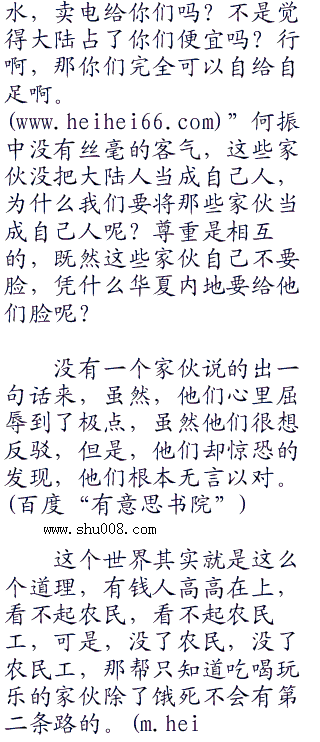 何振中怎么会不知道这些家伙的想法呢,一边想要当上等人,鄙视着下面的大陆人,然后一边有想要驱赶大陆人,嫌大陆人污染了这里,可是现在走了呢,这些家伙又发现,似乎离不开大陆人了。