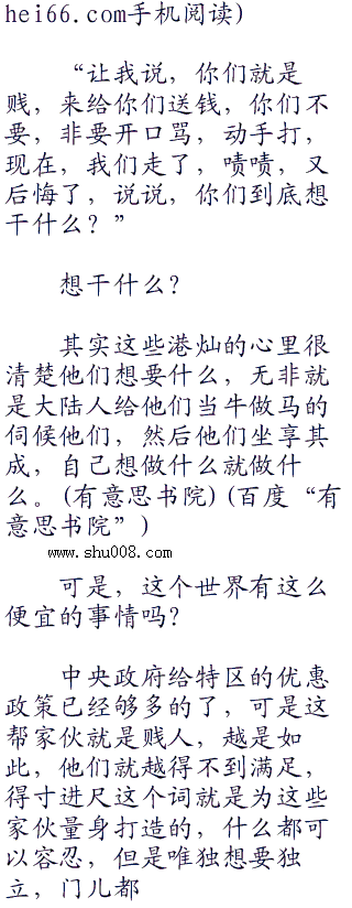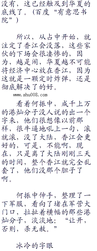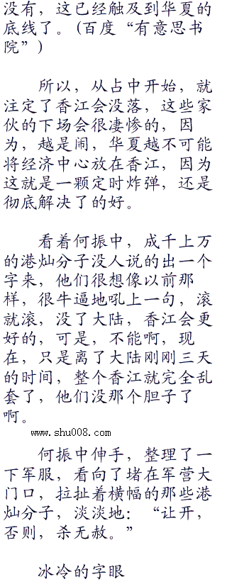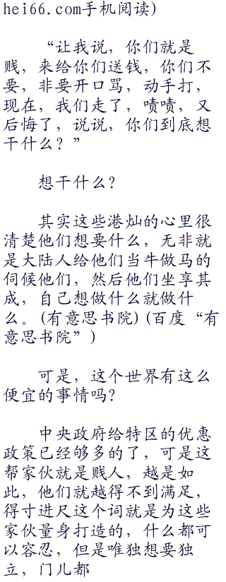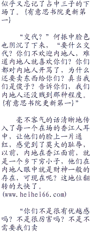 何振中脸上的冷笑之色更甚,直盯着站在最前面的家伙,淡淡地说道:“这不是你们一直都想要的事情吗?现在,香江是你们香江人的了,大陆人全部都撤离,不好吗?”