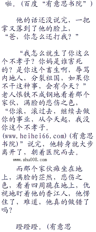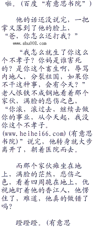 一个站着的港灿分子挨了一巴掌,一张脸上立刻就出现了五根通红的手指印,半边脸立刻就肿了起来,他抬手,捂着脸,不可思议地盯着身前的老人,“爸,你,你竟然打我?”他长到这么大,别说是挨打了,他爸爸骂都没有骂他一句,可现在,竟然当着这么多人的面给了他一巴掌?