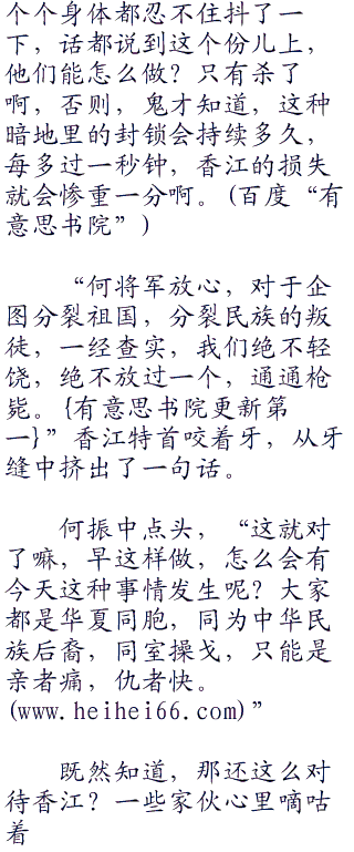 “这是香江特区政府自己的事情,中央政府不便插手。”何振中淡淡地说了一句,“至于,杀不杀这些家伙,就由你们自己决定了。”