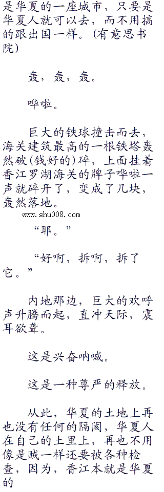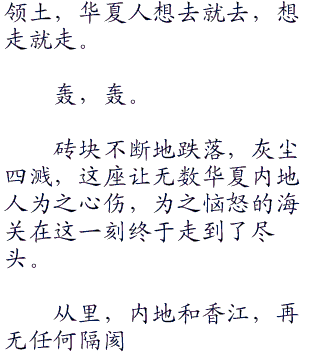 所有人都记住了这一幕,历史也记住了这一刻,死神降临香江,血流成河,从此,香江特区再也没有人敢闹独立。所有人也都记住了何振中,因为他们所遭受的一切都是他带来的,而杀的那些人的当中,有他们的儿子,丈夫,亲人。