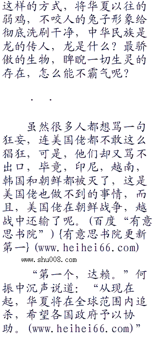 “无论是谁,身份如何,有谁在身后支持,只要是分裂分子,那么,除了死不会有第二条路留给他们,而且,就算是死了,华夏也势必鞭尸,将其挫骨扬灰。”