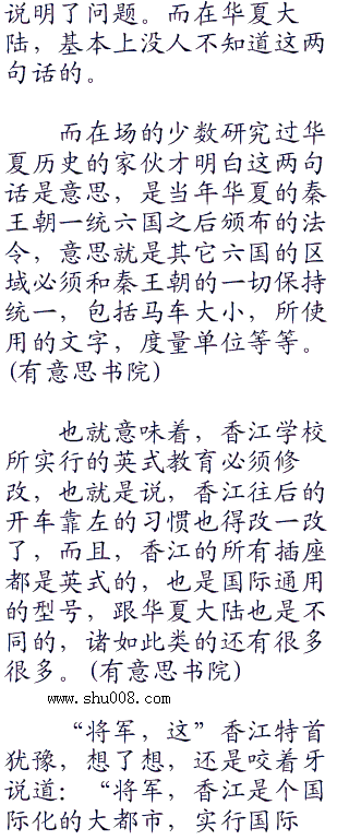 “香江作为华夏的一个特区,的确该有一些特殊照顾的地方,但是,这绝不代表着,香江就可以游离在华夏之外 」。”