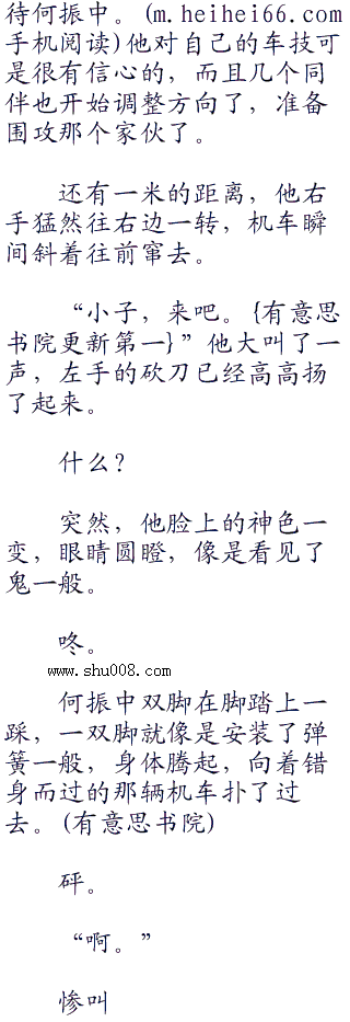 轰鸣声响起,十几辆机车就像是脱缰的野马一样,朝着何振中冲来。