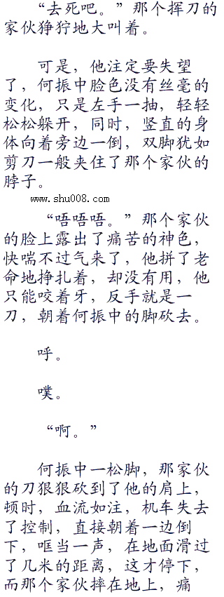 “吗的,我们老大问你话呢。”一个小混混抬起砍刀,直指着何振中,骂了一句。