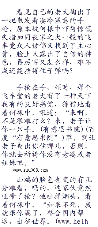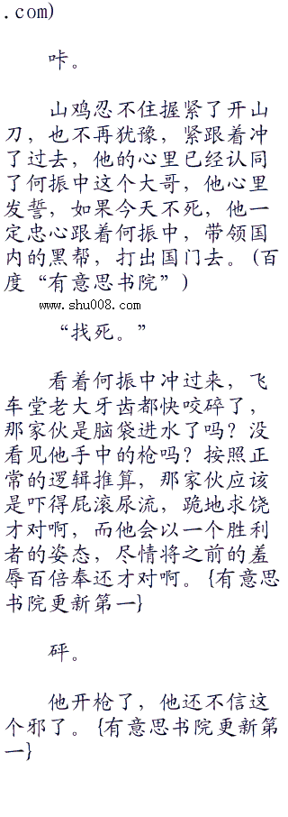 山鸡瞪大着眼睛,直盯着何振中,甚至连含在嘴里的烟都忘了抽,他有些不明白何振中的意思。