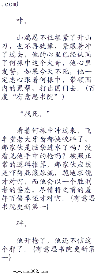 何振中看都没看那家伙一眼,只是看着山鸡,“怎么样,有兴趣当老大吗?”
