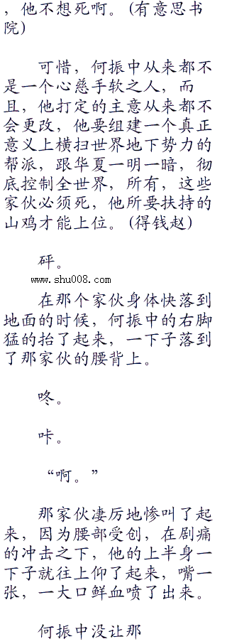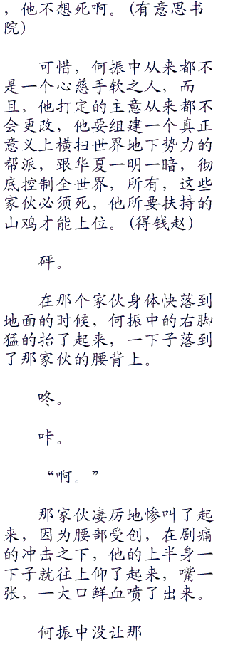 一个前冲,当当,地面水泥不断飞溅,接着,滋的一声,何振中脚一踩地,身体猛的往前一跃,一个鱼跃冲顶,嗖嗖,他甚至感觉到了子弹擦着头发飞过的轻微感觉。