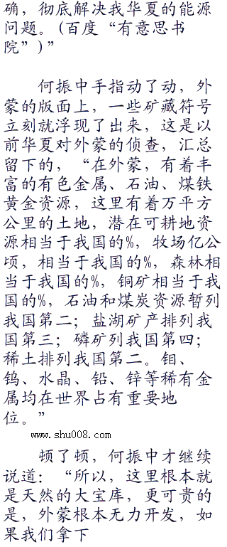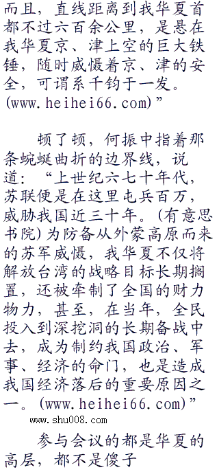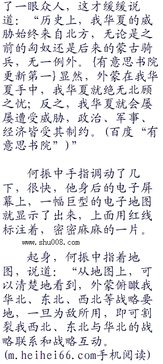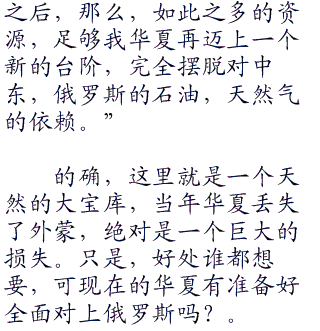 顿了顿,华夏最高首长这才继续说道:“本来,在年,苏联剧变的时候是个收复的好机会,可惜,那个时候,我们遭受西方制裁,根本无力出兵。现在,机会来了,就在几分钟前,外蒙总统跟我通电话,请求我华夏的协助,似乎,有迹象显示,俄罗斯即将对外蒙下手。今天召集大家,就是想问一问各位的意思,在即将到来的这场风波之中,我华夏该怎么做。”