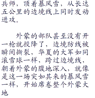 “啊。”看着飘落的雪花,值班的外蒙士兵忍不住打了哈欠,该死的鬼天气,又开始下暴雪了,他们又要被困在这里好几天了。