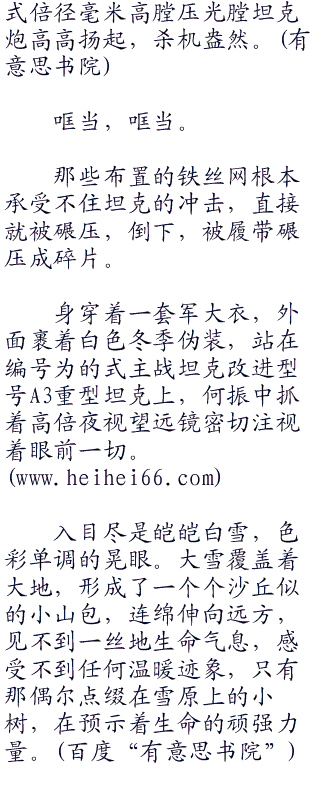 几十辆式主战坦克就这样出现了,仿佛从天儿降一般,出现在了外蒙的边防部队眼前,如同一头头崩腾咆哮的北极熊,在肆意的狂奔着,那些象征着边界线的铁丝网摧枯拉朽的就被推倒了。
