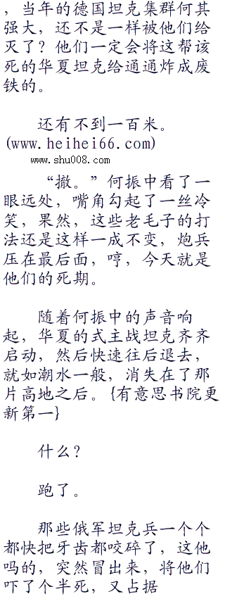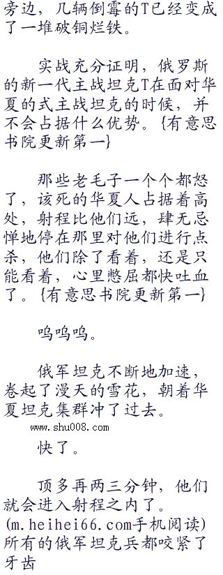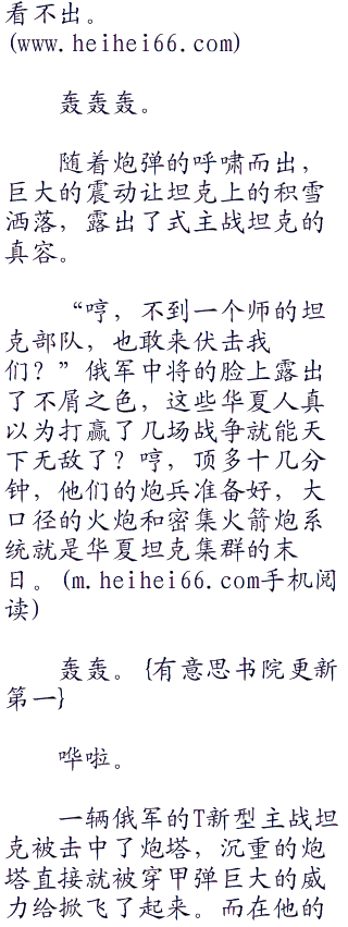 他的判断没错,何振中带领的坦克集群正在一座高地之上,已经在那里等了半个小时了,积雪早已将坦克覆盖,离远了,根本