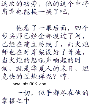 “他吗的,都起来,快,过河。”他嘶声裂肺地大吼了起来,“后面的炮兵给停下河对岸,立刻建立阵地。”