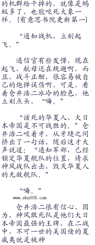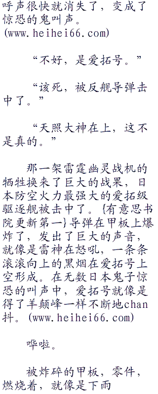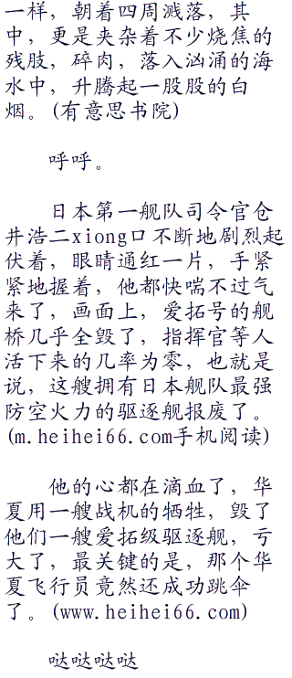 鬼子的航母在转向,在逃窜,无法释放战机,驱逐舰,护卫舰拼了命地释放拦截导弹,近卫密集阵防空系统掀起了一阵阵的金属风暴,顽强地抵抗着。