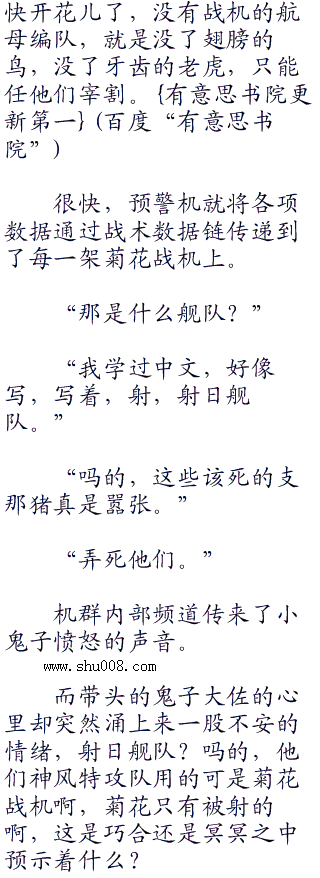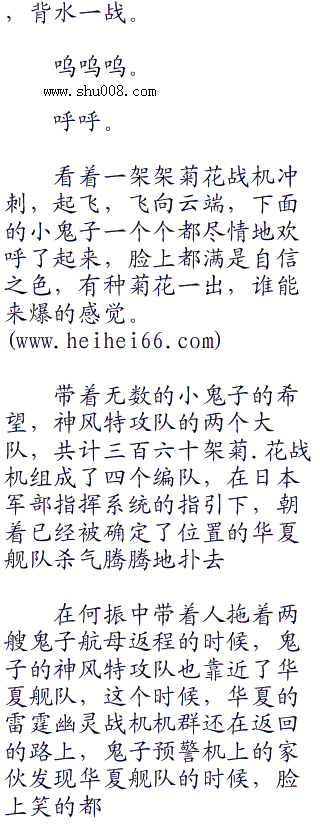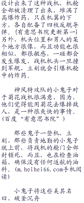 “很好。”鬼子大佐满意地点点头,傲然说道:“我们神风特攻队是一支有着悠久历史和光辉战绩的部队,不可一世的美国佬曾经在我们面前瑟瑟发抖,他们强大的航母也被我们炸沉,我们是无敌的。”