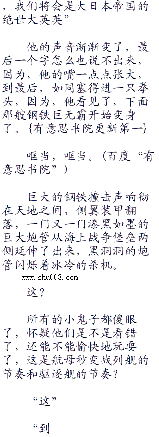 一望无垠的蓝色大海上,一艘钢铁巨山耸立在那里,在阳光的照射下,闪烁着冰冷的寒光,甚至不少小鬼子感觉,他们的狗眼都快被闪花了。