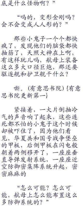 当看见海上战争堡垒的这一刻,这些连死都不怕的鬼子被深深地震撼到了,他们不是没有见过航母,可这他吗也太大了吧,一眼望去,根本就是一座小山啊,他们很怀疑,他们的菊花战机撞上去,能不能给那艘巨无霸造成伤害。