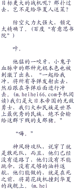 这个时候,鬼子机群的内部频道之中,再没有一点儿声音传来,所有小鬼子都被吓住了,号称敢死队的家伙此刻心里却产生了恐惧,很矛盾。