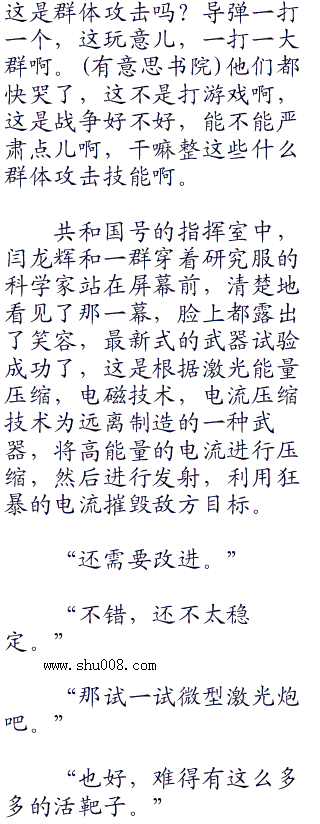 硝烟渐渐散去,那些小鬼子一个个目瞪口呆,差点儿没将他们的狗眼给瞪出来,他们的发射的导弹被全部拦截,没有一枚突破进去,这,太不可思议了,九十架战机,那可是三百六十枚反舰导弹啊。