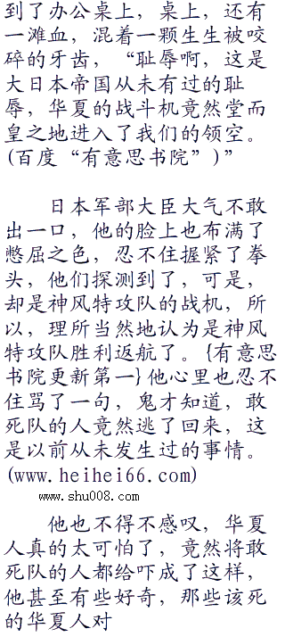 没有小鬼子知道发生了什么,在他们想来,神风特攻队的人都是不怕死的,可现在,不怕死的勇士竟然被吓破了胆子,太逃命?他们不知道,那些神风特攻队的勇士到底经历了什么。