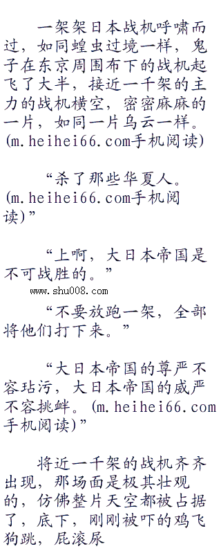 周围的小鬼子也全都是同样的表情,他们从未想过,他们最看不起的华夏人,曾经被他们杀的差点儿亡国的华夏人竟然有胆子闯进他们大日本帝国的领空,这绝对是一件不可原谅的事情。