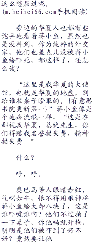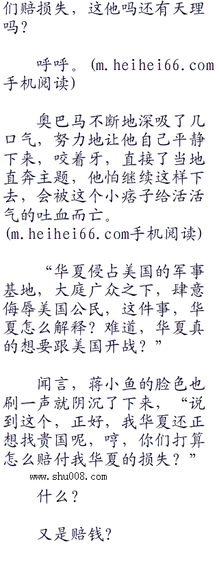 蒋小鱼将手枪给放到了会议桌上,斜着眼睛,看了一眼奥巴马等人,不急不慢地说道:“怎么,总统先生想要比谁的声音大吗?”