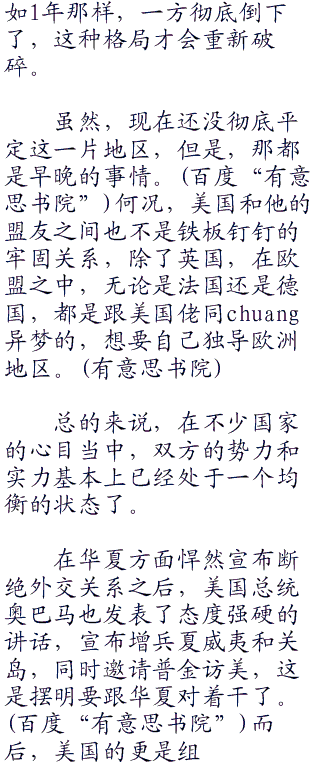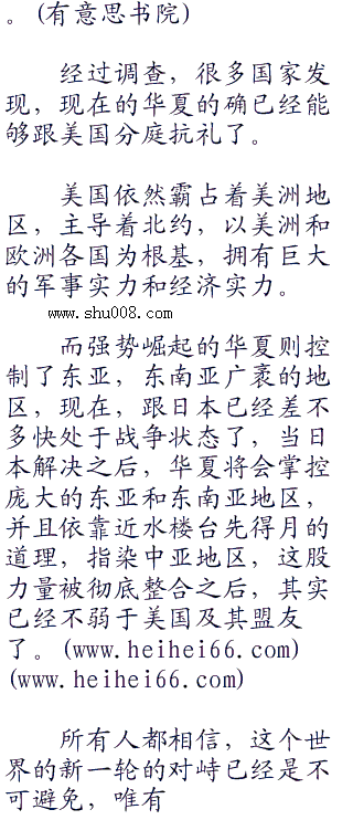 虽然,很多国家都预料到了华夏和美国肯定是水火不相容的,因为,无论是最开始越南战争还是后来的半岛战争,华夏都和美国直接干上了,而后,美国更是被迫将塞班岛割让给了华夏,可以说,美国的霸主地位就是这么生生地被华夏给磨掉了。