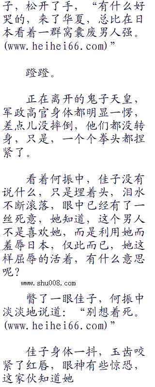 搂着佳子的腰,何振中看着那些悲愤的小鬼子,大声说道:“怎么,很不服气吗?”