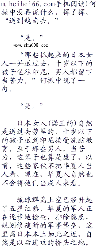 何振中单手搂着满脸泪水的佳子,身后是一群全副武装,杀气腾腾的华夏军人,在他们前面,则是满脸他痛苦,悲愤,憋屈之色的小鬼子,而在海滩上,海面上则是一具具血淋淋的鬼子尸体,更远的地方,以共和国号海上战争堡垒为核心的射日舰队伫立。手机阅读更方便m..com