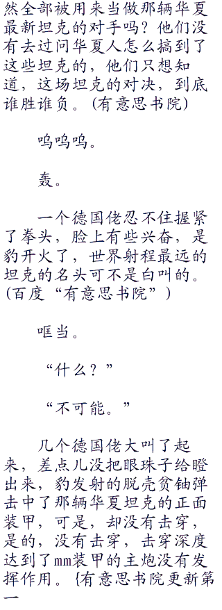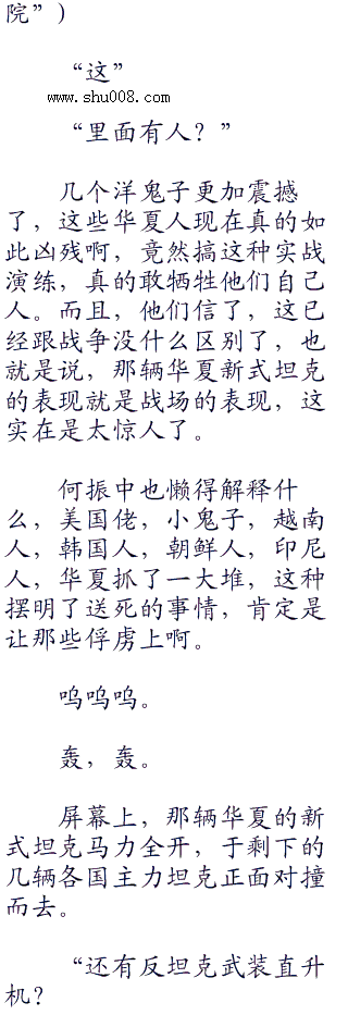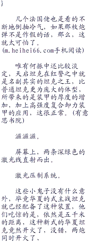 他们想到更好的词去形容那一架坦克了,虽然只是透过屏幕,但是,那种令人心悸的杀机却是扑鼻而来,特别是那两根粗大,黑洞洞的炮管,更是让人看一眼就觉得心慌。
