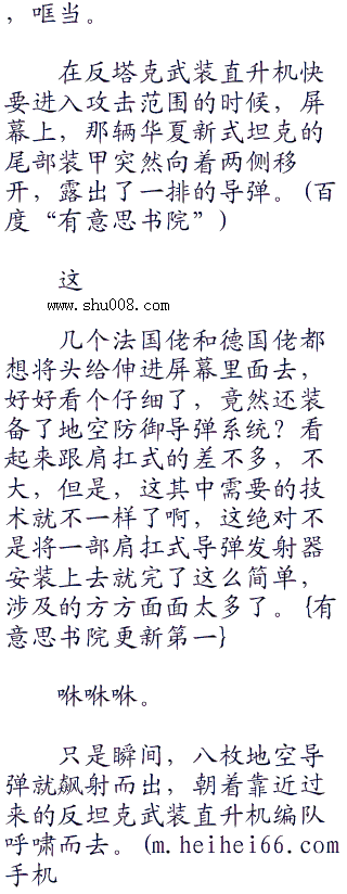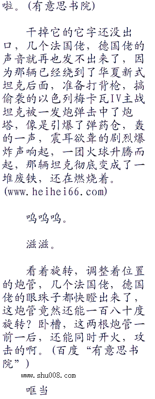 这并没有出乎几个洋鬼子的意料,毕竟这种压制装置,是华夏率先使用,自然有办法应对,他们震惊的是,美国msep坦克和法国的勒克莱尔坦克发射的炮弹竟然同时落空了,全都炸到了空地上,炸开了两个大坑,掀起了漫天的沙土。