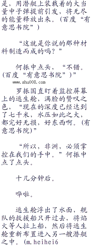 何振中低声说道:“是实验室的那些家伙,说是最新的研究发现,一种非洲才有的矿石,经过冶炼,处理之后,强度比现阶段任何的材料都要高,而且轻,他们似乎想用来制造战争机器人。h ei6 6 co m”