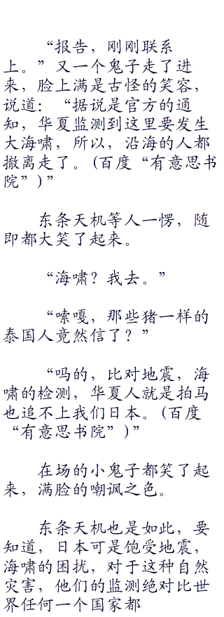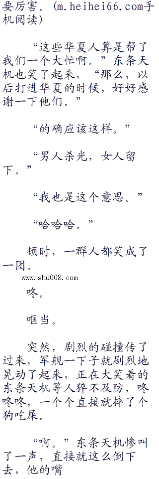 他环视了一眼周围军舰上的小鬼子,指着前面,大声说道:“看吧,这就是与我大日本帝国作对的下场,任何敢于抵抗的家伙,通通都会被我们撕裂成碎片。”