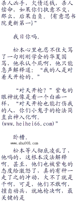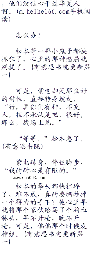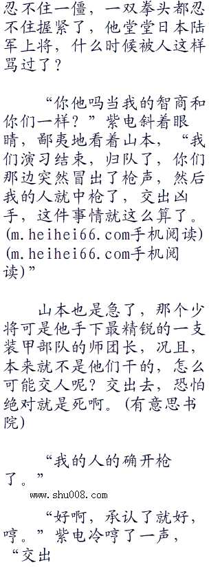 “该死的小鬼子,你们是不是想挑起战争?”华夏东南亚战区下属印尼山地兵团的少将师长紫电满脸冰冷地看着松本,丝毫不客气地直接骂了一句,“说,你们是不是想要找死?如果是,那么,我们不介意成全你们。w.w.w..c.om”