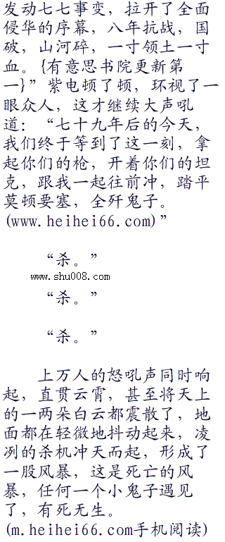 看着下面突然发生的变故,所有在阵地上的小鬼子都有些没反应过来,怎么,突然就变成了这样?他们的一群长官就像是猪一样,就被杀了个一干二净。