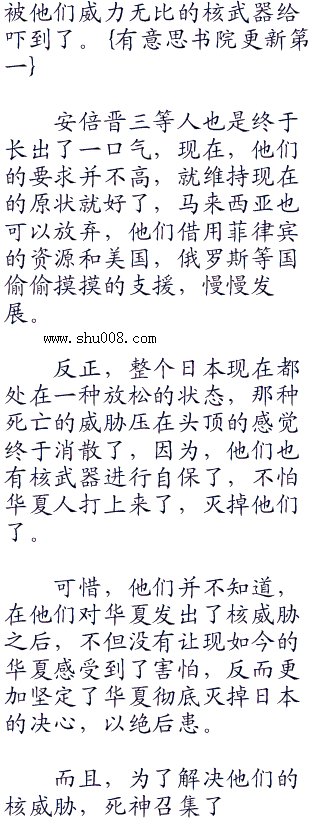 所有人都没有任何的意外,毕竟,这个华夏的战神,外人眼中恐怖的死神是出了名的铁血,特别是对外的时候,鬼子敢用核弹威胁华夏,那么,这个死神就敢真的用氢弹将日本岛给炸沉。