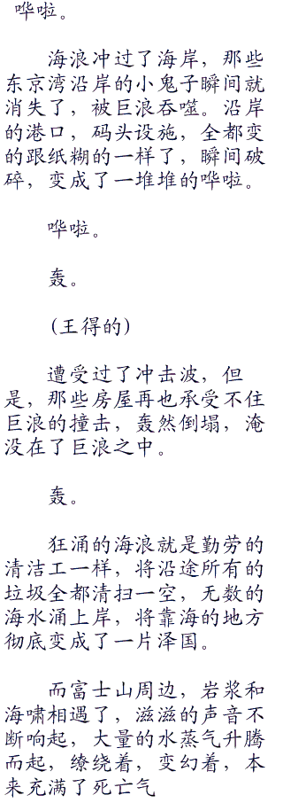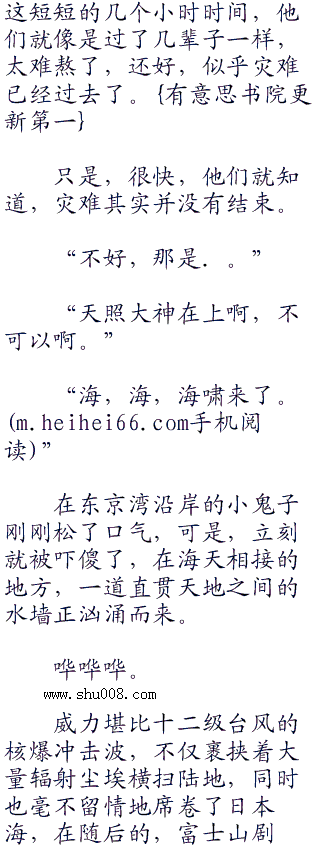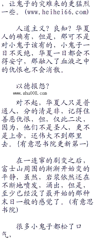 而更多的小鬼子只是惊恐地看着富士山一点点龟裂,然后一点点倒塌,富士山是他们的象征,是他们的神山,可是,却倒塌了,这意味着什么?难道说,日本真的要国破山河碎了吗?