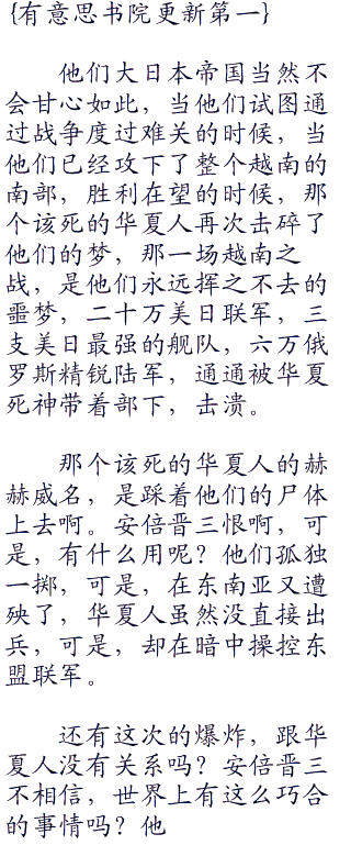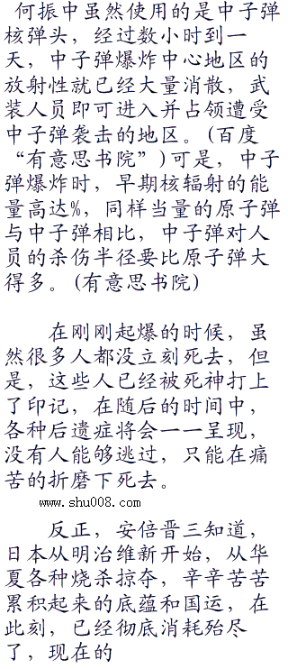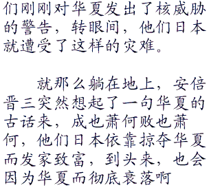 他恨啊,日本可以战败,没关系,就像是二战一样,他们输了,那么惨,可是依然能够快速崛起,再次屹立在世界豪强之列。可是,这次不一样啊,这已经彻底动摇了他们的根基,人没了可以再生,房子倒了可以再建,可是,土地没了,他们立足的根本就没了啊。