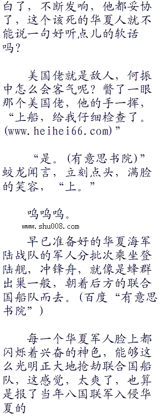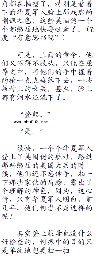 看着那些家伙快要吐血的脸色,何振中的脸上始终带着一丝冷笑,当年,列强依靠坚船利炮,强行打破华夏国门的时候,华夏人就是这样的屈辱和无奈吧。无论是老毛子还是美国佬,在这个世界都横行霸道习惯了,现在,这种滋味儿很难受吧。