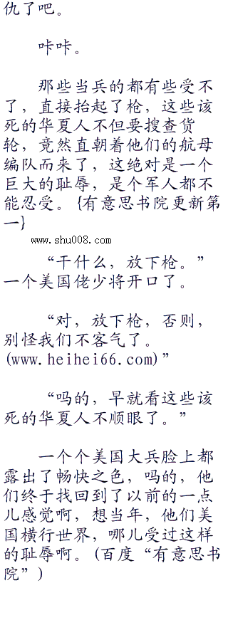虽然很想重振美国雄风,虽然很想男人一把,可是,他最终还是没这个勇气,没办法,华夏舰队太强了,数次的交锋,美国完败,为了小命着想,他真的不敢下令开战啊。