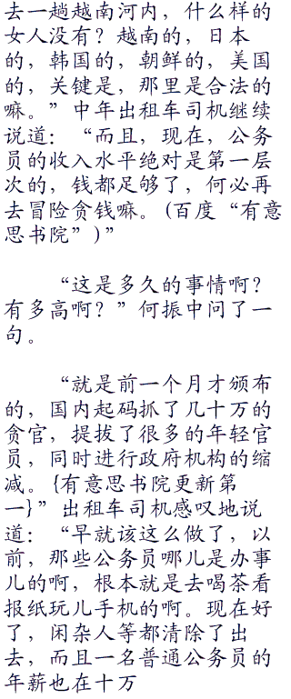 中年男人的脸上露出了一丝傲然之色,“因为我们的华夏强大了啊。现在,只要有能力的人都到朝鲜半岛,越南,印尼去闯荡了,那些地方的家伙可不敢再像以前那样欺负我华夏人了。w w w co m而且,现在出去的华夏男人都是抢手货啊,那些国家的女人都恨不得倒贴嫁给华夏男人,然后加入我华夏国籍呢。”