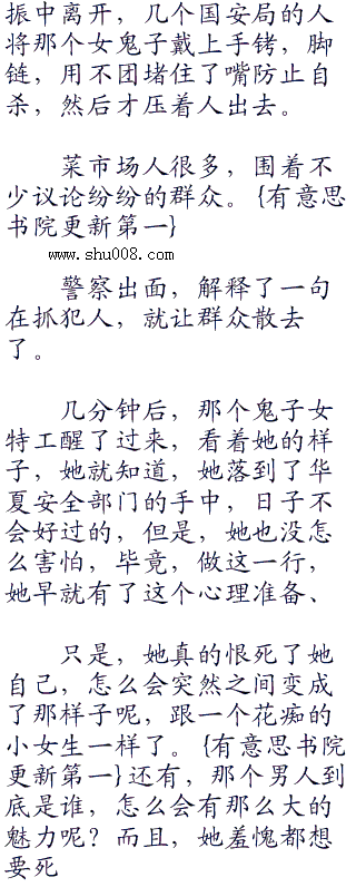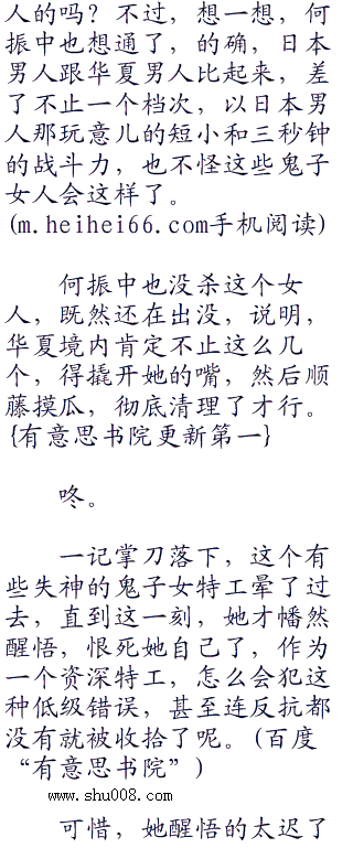 而那个鬼子女特工则等在那里,过几分钟,再出去。