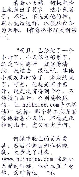 何振中掏出电话,和东海国安的负责人联系了一下,不到一分钟,就确认了小天铭没事儿,还在大院外面的小巷子中。