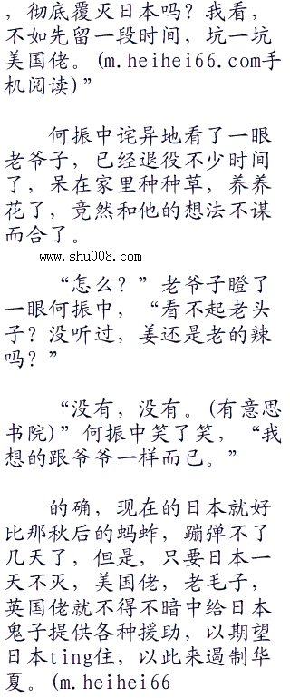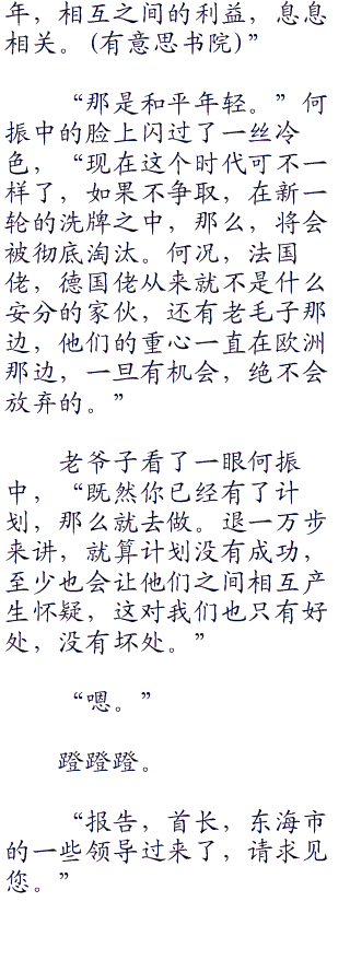 何振中不得不感叹,老爷子这些老一辈的革命家,的确不是现在的人能够比的,那个时候虽然穷苦,但是,他们的认知却比现在的人清楚了太多。