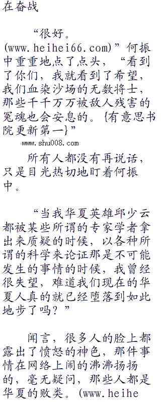 看着那些激动的华夏青年,何振中深吸了一口,身体里的热血也开始渐渐沸腾了,“九七三”不管前路如何艰险,不管过程多么艰难,可是,只要华夏青年一代没有彻底被打垮,那么,华夏的希望就永远都不可能覆灭。