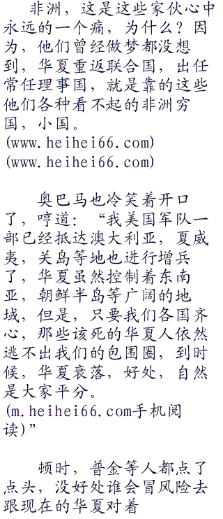 特别是普金的到来,更是让奥巴马得意非凡,以前,俄罗斯和美国各种对着干,现在,这个最大的敌人,却不得不向美国靠拢,以寻求对华夏的遏制。